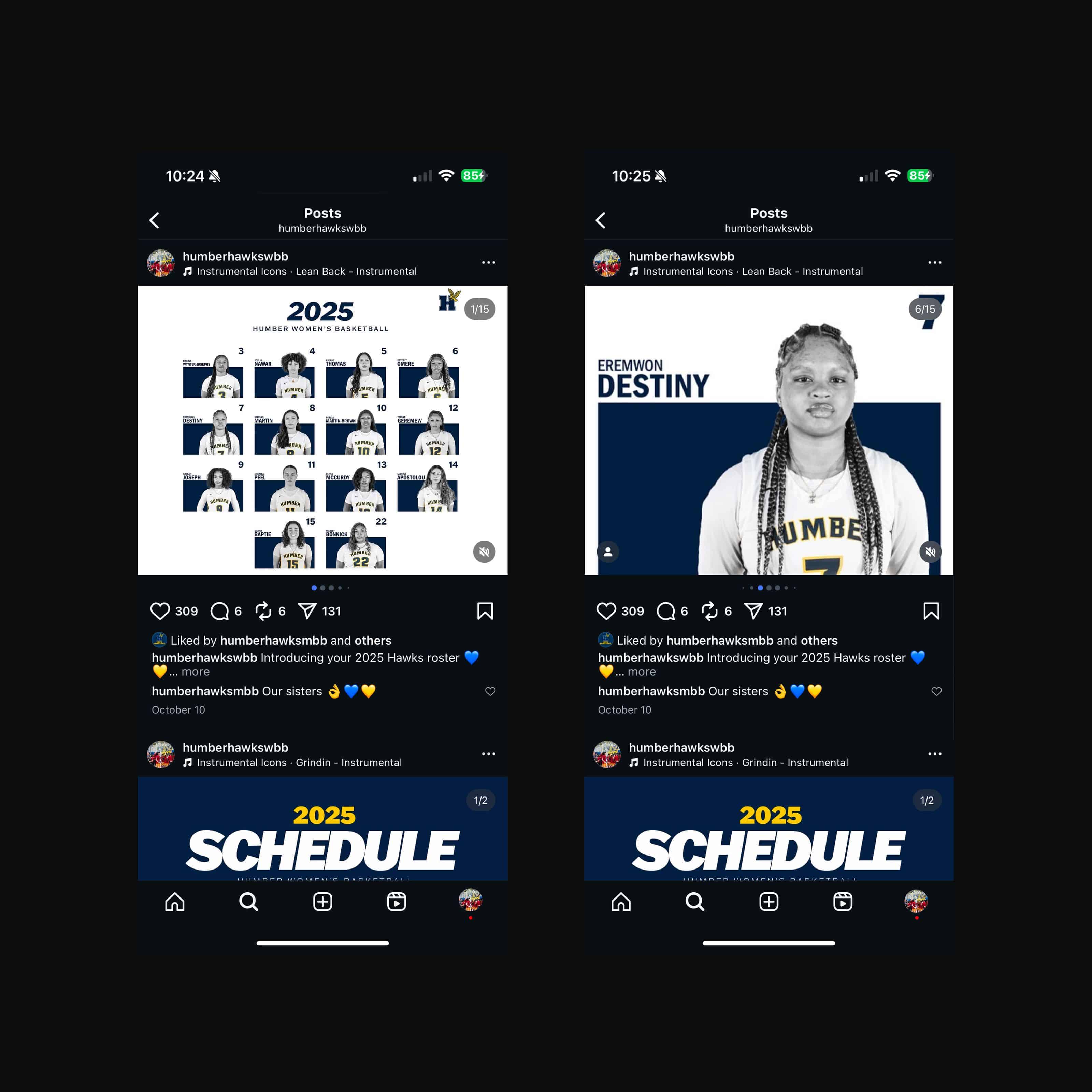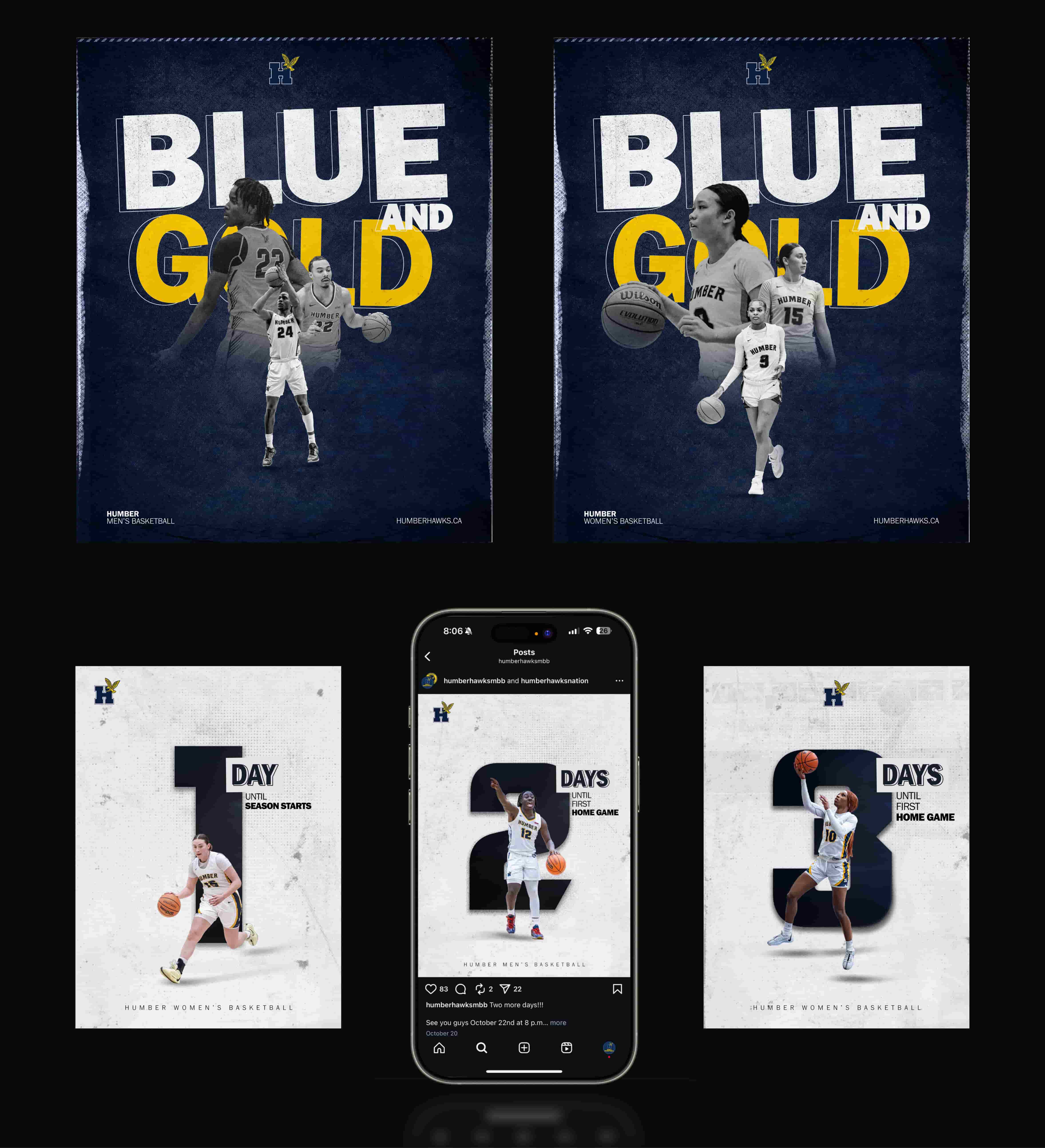 Aligned with the Humber Hawks’ brand identity, the layout and social media designs were developed to stay visually engaging across all platforms and materials.