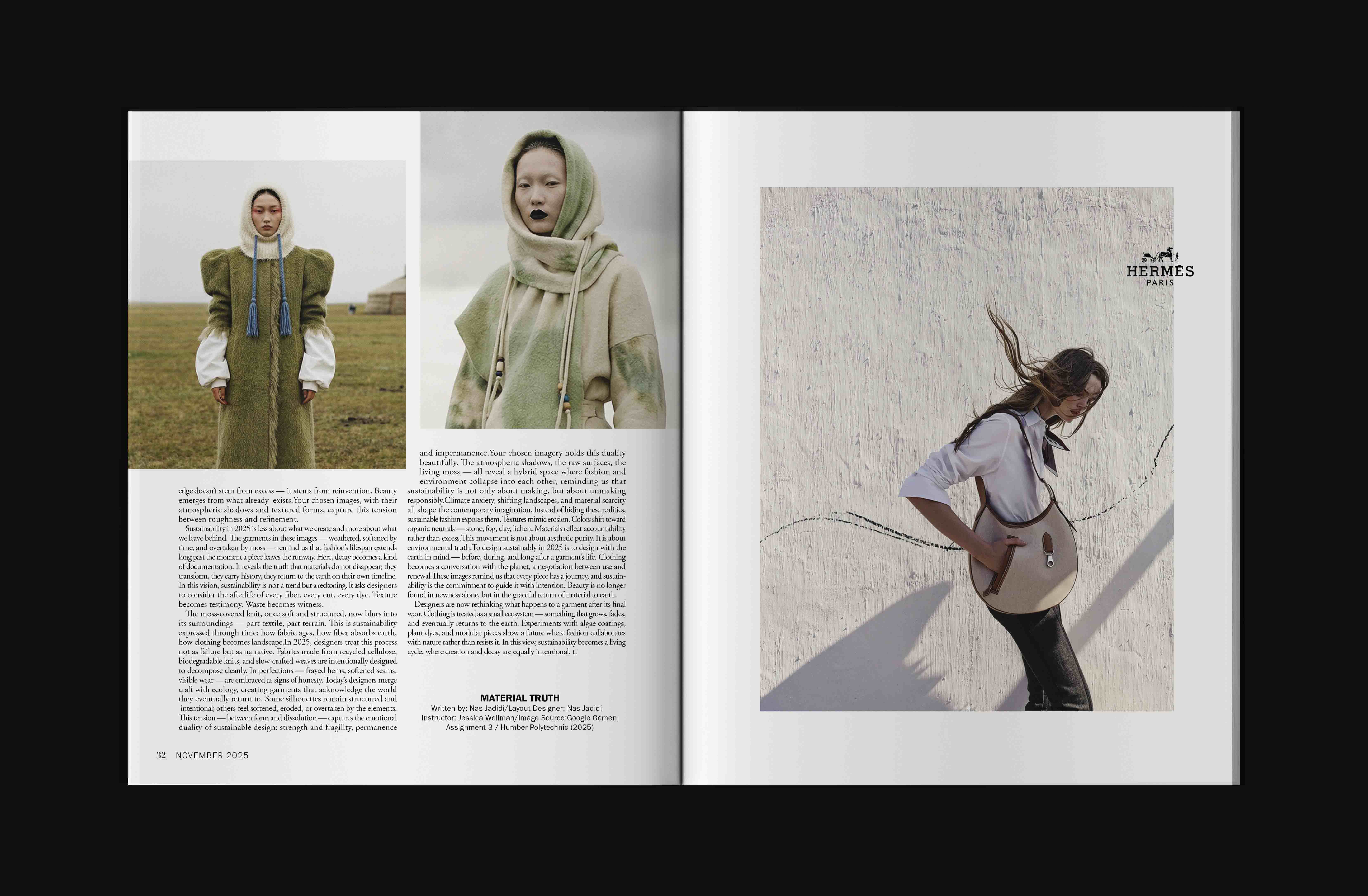 This project explores Vogue’s iconic editorial style through a carefully crafted magazine spread. By studying the publication’s typography, layout structure, and image hierarchy, the design reflects Vogue’s refined visual language while maintaining clarity and balance. The final outcome demonstrates precision, consistency, and a strong understanding of high-fashion editorial design.