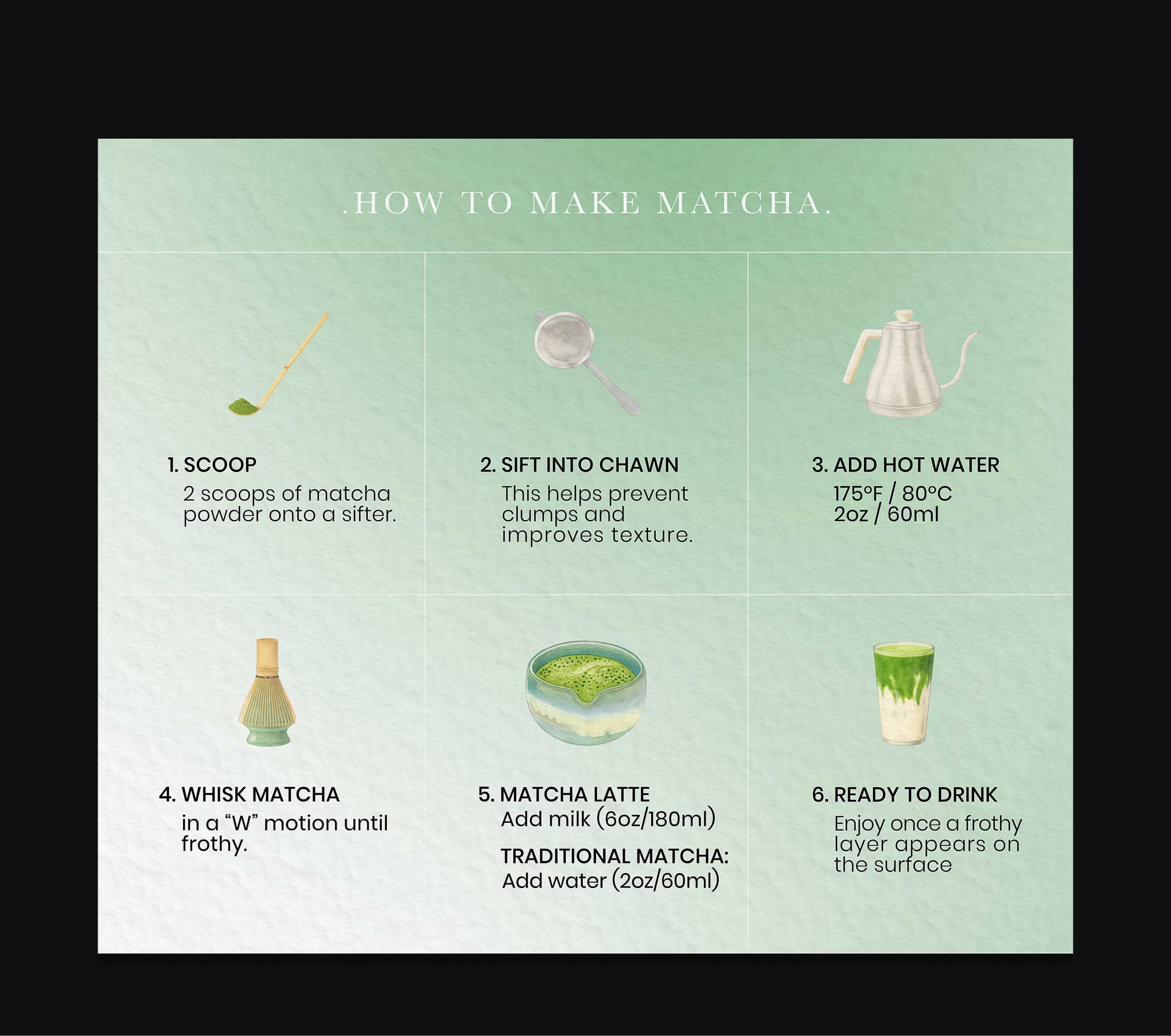 - Matcha-style instruction card